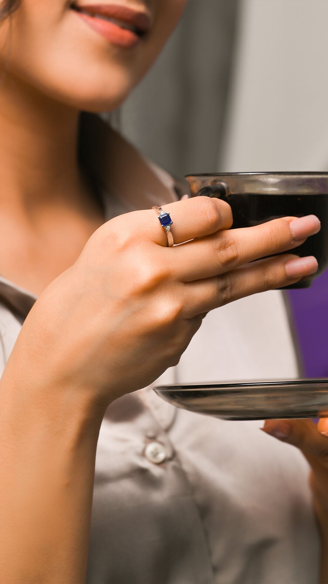 Part of our Estere Collection, elegantly crafted with precision, this ring seamlessly combines the allure of the sapphire with the luxurious touch of gold-plated silver. Each time you wear it, let it be a celebration of enduring style and refined taste.
