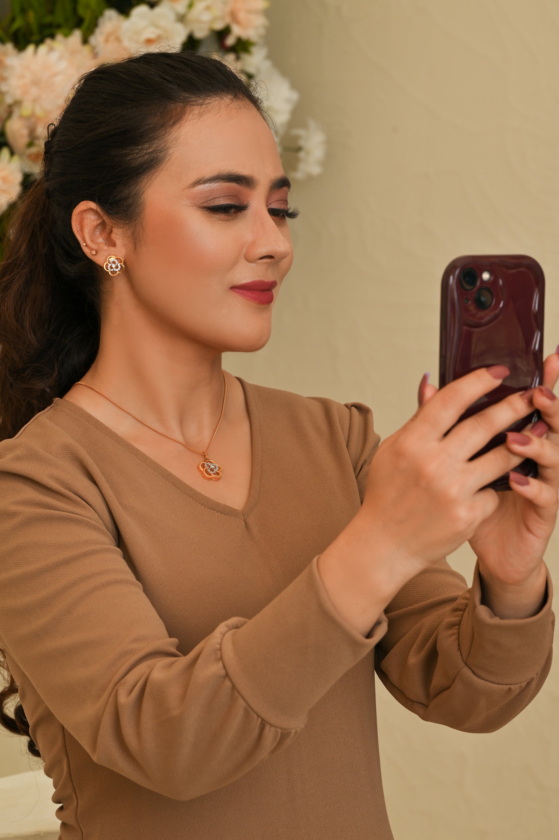Part of our Berina Collection, Rossette Zircon set is crafted from pure silver and gold-plated for a luxurious finish.