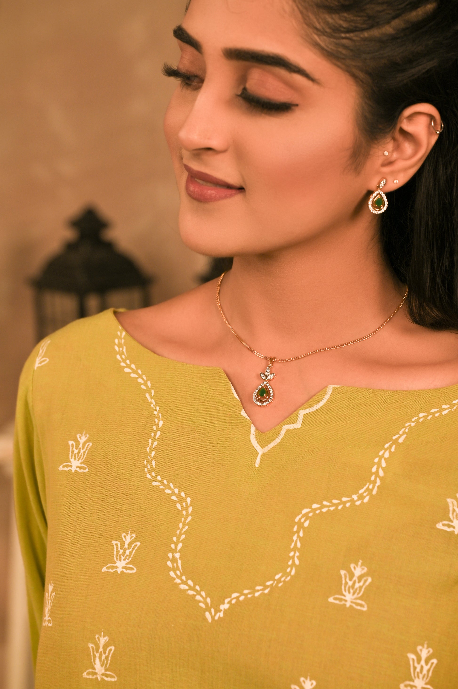 Part of our Caspara Collection, the teardrop shape gracefully frames the vibrant green stone, evoking a sense of timeless beauty and natural allure. Meticulously designed, this set seamlessly blend classic charm with contemporary flair, making them a versatile addition to your jewellery collection